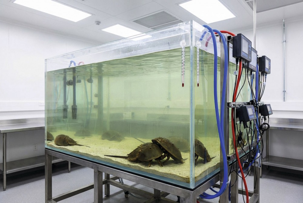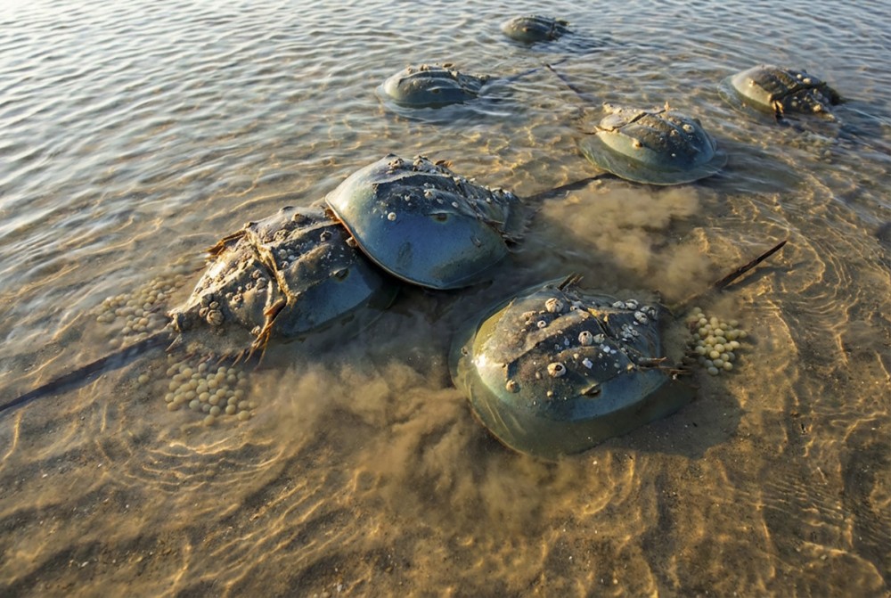 — Процедура забора крови у мечехвостов менее фатальна: берётся лишь часть, что позволяет отпускать животных-доноров обратно в природу. Но уровень выживаемости их после процедуры всё равно вызывает вопросы у экологов.