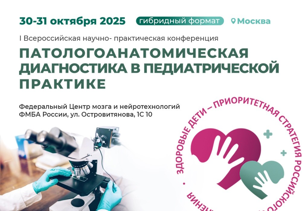 30 – 31 октября 2025 г. в Москве состоится I Всероссийская научно-практическая конференция «Патологоанатомическая диагностика в педиатрической практике». Здоровые дети – приоритетная стратегия Российского здравоохранения! Место проведения: Федеральный Центр мозга и нейротехнологий ФМБА России, г. Москва, ул. Островитянова, д. 1, стр. 10, подъезд 1.