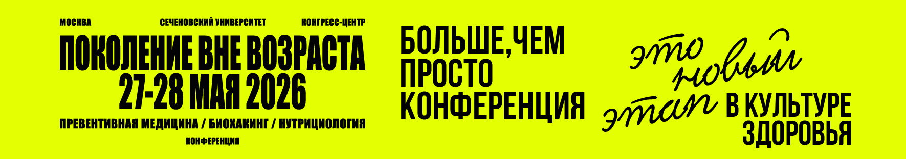 III Конференция «ПОКОЛЕНИЕ ВНЕ ВОЗРАСТА. Превентивная медицина, биохакинг, нутрициология» 27-28 мая 2026 г.